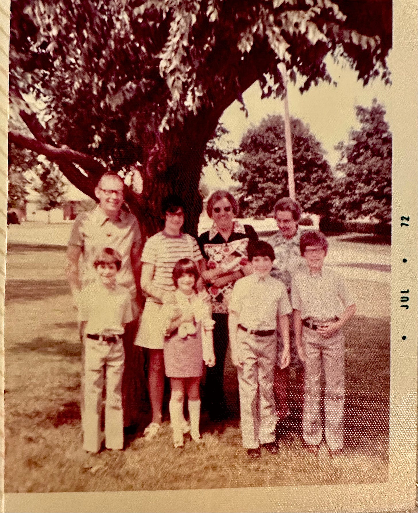 I grew up looking up at and being shaded by the two big, burly elms. They’re part of the landscape of my life. Of my entire family’s existence. The elms were planted in 1953, a year before my grandma bought the house. In 1962, mom and dad bought the house, trees and all, from grandma. The elms’ brawny branches have loomed large in our family ever since.